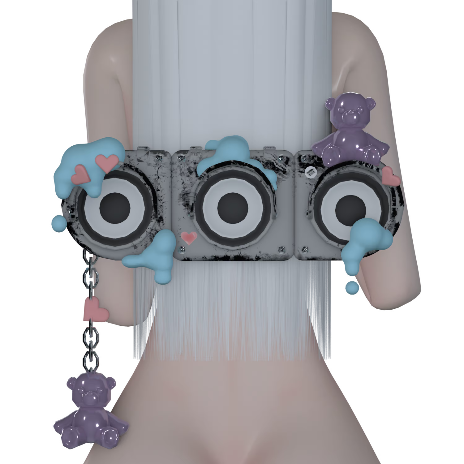 ━ ‧₊˚ᵕ̈ ︰customizable via materials + textures that are included for backbling and nails , rest are metals for earrings + rings + nail accents , i recommend trying the crystal shader on the bears to add a gummy bear affect ont them !
